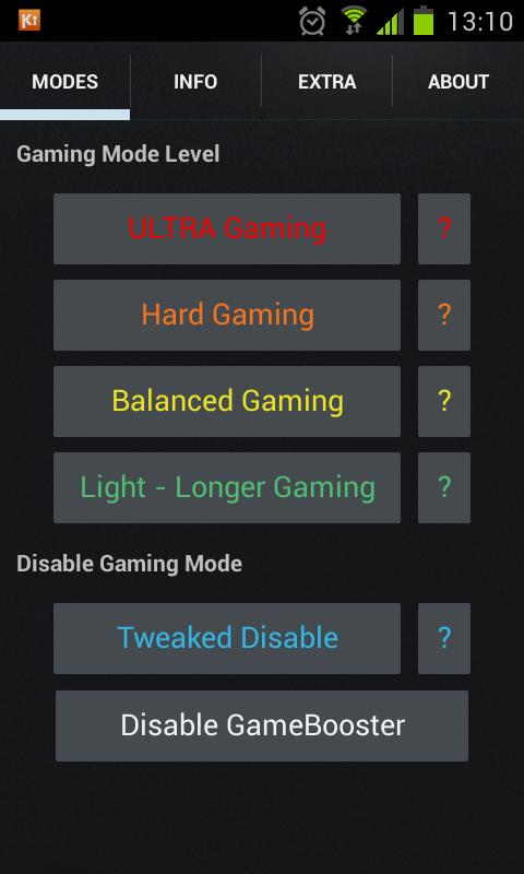 Memberikan kehidupan baru ke telepon lama Kalian dengan GameBooster sekarang!Apakah Kalian bosan karena permainan baru tertinggal pada ponsel Kalian ? Kalian tidak perlu telepon baru untuk bermain game high-end ! Cukup meningkatkan permainan Kalian dengan Game Booster !Pilih dari 4 berbeda Tingkat Modus Gaming dan memberikan ponsel lama Kalian hidup baru .